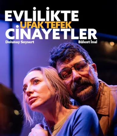 Evlilikte Ufak Tefek Cinayetler, Dolunay Soysert ve Bülent İnal’ın çarpıcı performanslarıyla, sırların, yalanların ve tehlikeli oyunların gölgesinde evlilik kurumunun çatışmalarla örülü yüzünü sahneye taşıyor.