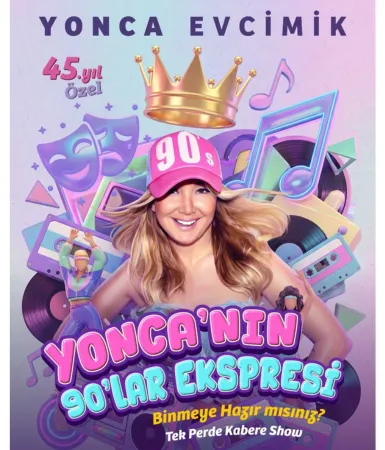 Yonca’nın 90'lar Ekspresi; klasik eser kalıplarını yıkan, konser, dans, dijital sanatlar ve müziğin iç içe geçtiği çok katmanlı bir kabare tiyatro eseridir. 90’ların ikonik ismi Yonca Evcimik, bu prodüksiyonda sadece bir sanatçı değil, izleyiciyi lineer zamandan koparıp interaktif bir tiyatro gösterisine davet eden, kuşaklar arası bir "zaman rehberi" rolünü üstlenmektedir.